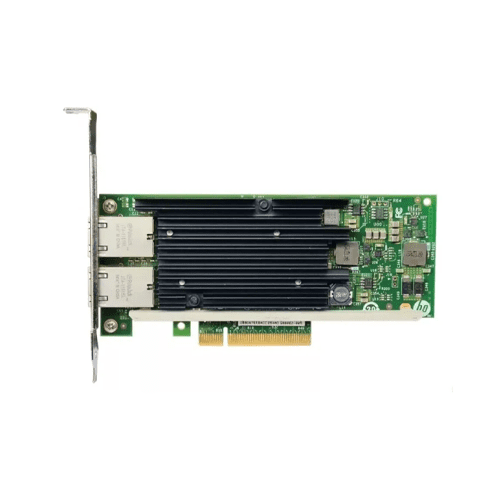 Tarjeta de red PCI-E x8 de doble puerto RJ45 10 Gigabit. Compatible con servidores HP Gen8/Gen9. Incluye perfil bajo (LP). Ideal para centros de datos y redes empresariales que requieren alto ancho de banda y baja latencia.
