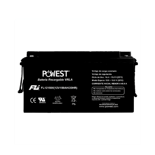 La Batería Sellada Powest FL121500GS 12V 150Ah es ideal para sistemas de energía solar, telecomunicaciones, UPS y equipos de emergencia, garantizando energía confiable y continua. Su tecnología AGM evita fugas, mientras que su diseño libre de mantenimiento asegura una larga vida útil y alto rendimiento en diversas aplicaciones. Con una capacidad de 150Ah y voltaje de 12V, ofrece almacenamiento energético robusto y eficiente. Además, su construcción sellada proporciona seguridad en ambientes exigentes, sin necesidad de ventilación adicional.